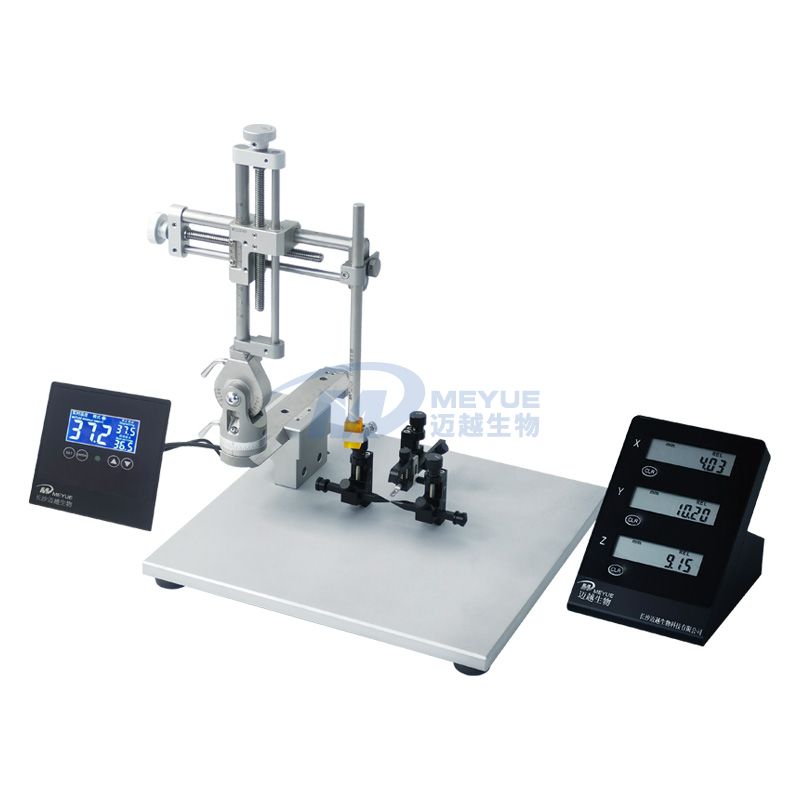 腦立體定位儀是用于對(duì)實(shí)驗(yàn)動(dòng)物進(jìn)行腦部定位并固定的裝置。實(shí)驗(yàn)時(shí)首先利用腦定位儀來(lái)固定動(dòng)物的頭部,使其不發(fā)生任何相對(duì)移動(dòng),然后利用動(dòng)物顱骨外面的標(biāo)志或其它參考點(diǎn)所規(guī)定的三度坐標(biāo)系統(tǒng),并根據(jù)實(shí)驗(yàn)動(dòng)物的腦定位圖譜,來(lái)確定大腦皮層下某些神經(jīng)核團(tuán),如海馬區(qū)的位置,以便在非直視暴露下對(duì)所研究的神經(jīng)核團(tuán)進(jìn)行定向的刺激、破壞、注射藥物、引導(dǎo)定位等操作??捎糜谂两鹕喜?dòng)物模型建立、癲癇動(dòng)物模型建立、腦內(nèi)腫瘤模型建立、學(xué)習(xí)記憶、腦內(nèi)神經(jīng)干細(xì)胞移植、腦缺血等研究。